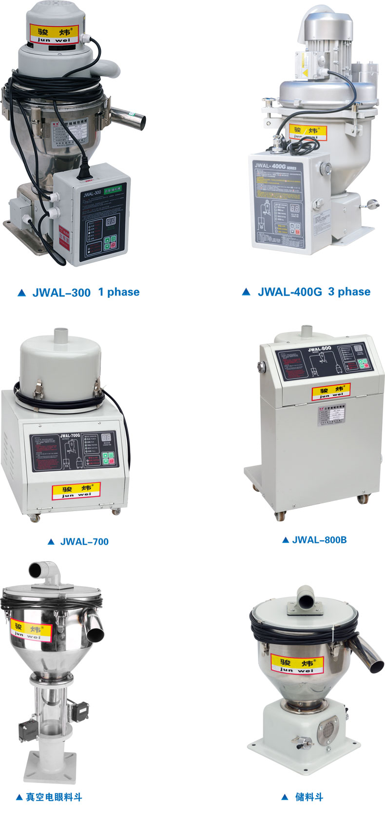 | JWAL-300 | 碳刷式 1.5HP 1φ | 300kg/h | 6L | φ 38 | 40*40*60 | 15 |